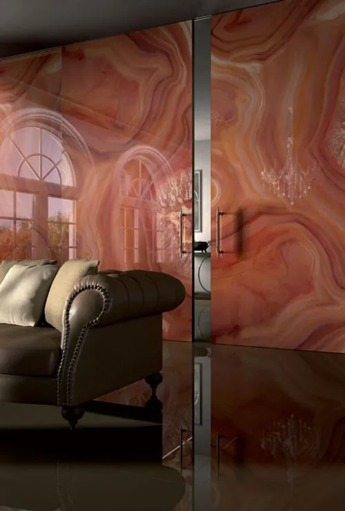 ВЕНЕЦИАНСКИЕ ПАНЕЛИ — это декоративные элементы, которые представляют собой многослойный «сэндвич» из двух алюминиевых композитных пластин с полиэтиленовой основой. Лицевая сторона панели покрывается декоративным слоем, состоящим из симбиоза смолы, синтетического перламутра и металлизированных пигментов. Финальным покрытием служит специальный оптический водонепроницаемый слой.
